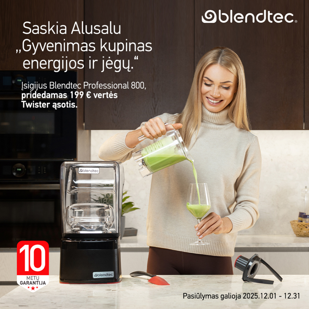 Blendtec skirtas ne tik kokteiliams gaminti. Jis padės paruošti dieviško skonio ledus ir migdolų pieną, tobulus miltus, nuostabius padažus ir užtepėles, karštas sriubas ir kitus skanius patiekalus, o su „Twister“ (neįeina į rinkinį) ąsočiu paruošite ir riešutų sviestą – visa tai vienu mygtuko paspaudimu.